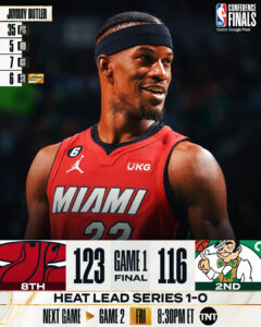 Jimmy Butler leads the #8 seed @MiamiHEAT to a road win in Game 1 of the ECF!