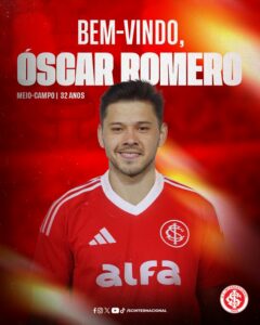 Óscar Romero é reforço do Internacional, de Porto Alegre. O criativo de 32 anos, irmão de Ángel Romero, estava livre no mercado, depois de terminar contrato com o Botafogo, onde foi campeão e realizou 27 jogos em 2024, com um golo e cinco assistências apontadas. Internacional em 57 ocasiões, o paraguaio venceu a Libertadores no Boca Juniors e já passou também por Shenghai Shenua, Alavés, Racing Avellaneda e Cerro Porteño, onde se formou.