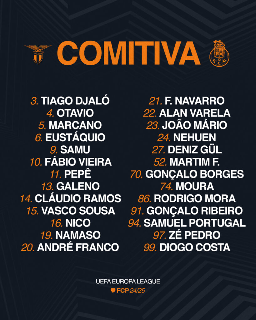 Diogo Costa, João Mario, Nehuen Perez, Tiago Djaló, Francisco Moura, Varela, Eustaquio, Fábio Vieira, Gul, Galeno, Samu.