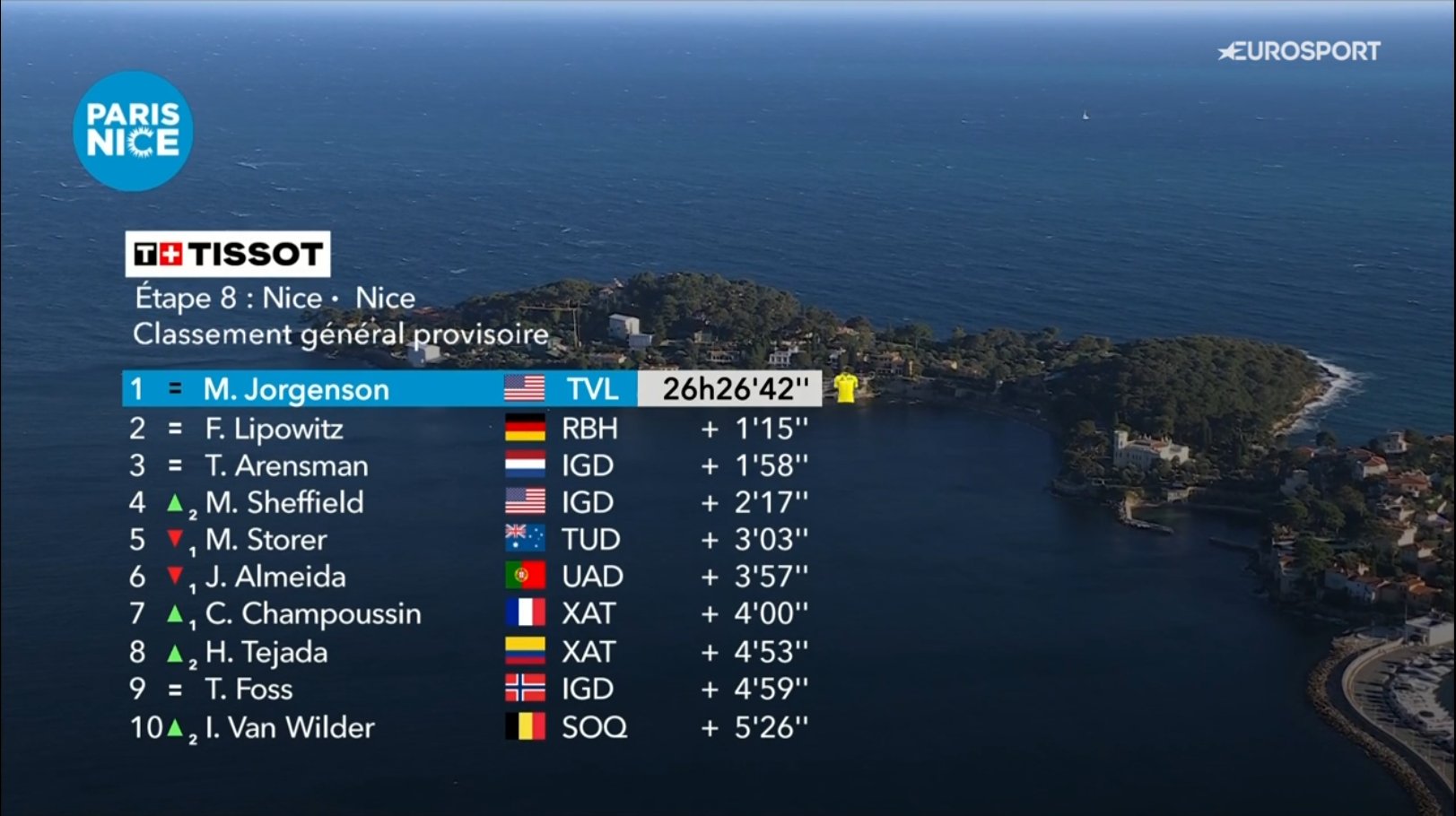 João Almeida terminou o Paris-Nice na 6.ª posição da classificação geral. O ciclista português, que bateu Jonas Vingegaard na etapa 4, perdeu tempo em quase todas as jornadas e hoje nem conseguiu acompanhar o ritmo dos da frente. A prova foi conquistada por Matteo Jorgenson, da Jumbo, que repete assim o triunfo de 2024. Já Florian Lipowitz e Thymen Arensman completaram o pódio.
