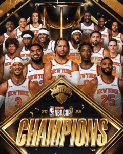 Os NY Knicks bateram os San Antonio Spurs por 124-113 e conquistaram a NBA Cup. O conjunto de Mike Brown sucede assim aos Bucks, numa noite com 7 jogadores na casa das dezenas. Brunson apontou 25 pontos, Anunoby 28 e KAT 16. Do outro lado, Wembanyama marcou 18, tendo Harper sido o melhor marcador (21).