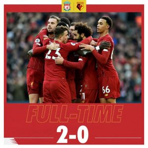 O Liverpool aumentou a sequência de vitórias ao receber e bater o Watford, por 2-0. Salah foi a grande figura da partida com um bis, sendo que no 2.º golo marcou com um calcanhar espectacular. Os Reds têm agora mais 10 pontos que o Leicester, que não foi além do 1-1, em casa, frente ao Norwich. Pukki adiantou os visitantes, e o melhor que o 2.º classificado da Premier League conseguiu foi empatar num auto-golo de Krul. Com este jogo também terminou a sequência de Vardy a marcar. Nos outros encontros, destaque para o Chelsea, que agravou a crise ao perder, em casa, frente ao Bournemouth, por 1-0. Gosling, já perto do fim, deu os 3 pontos à turma de Eddie Howe. Foi a 4.ª derrota do Chelsea nos últimos 5 jogos para o campeonato.