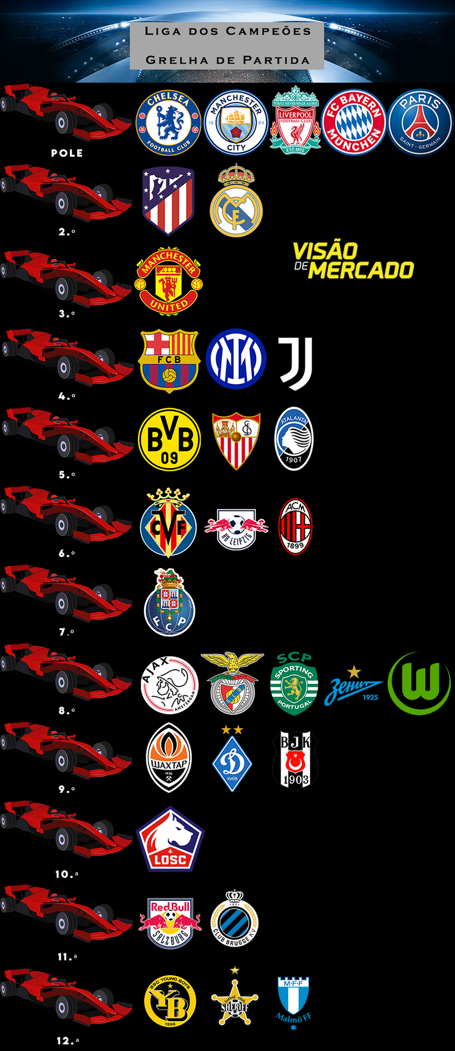 Interessante colocar o favoritismo em forma de grelha de partida, dá para ter uma visão mais concrecta dos candidatos mais fortes à conquista do trono europeu. Ainda assim a minha opinião diverge um pouco dos colaboradores do VM.