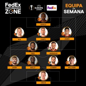 São seis os elementos do Manchester United que integram o XI da semana da Liga Europa. A goleada por 5-0 ao LASK, na Áustria, valeu as presenças de Brandon Williams, Bailly, Shaw, Fred, Daniel James e Ighalo. O restante XI fica completo com quatro elementos do Basileia (Omlin, Campo, Comert e Bua), que surpreendeu em Frankfurt (0-3) e ainda com Charles Aranguiz, do Bayer Leverkusen, que se estreou a marcar esta época na vitória dos alemães na Escócia (3-1 ao Glasgow Rangers). Recorde-se que os jogos da próxima semana a contar para a 2.ª mão dos oitavos-de-final foram suspensos pela UEFA.
