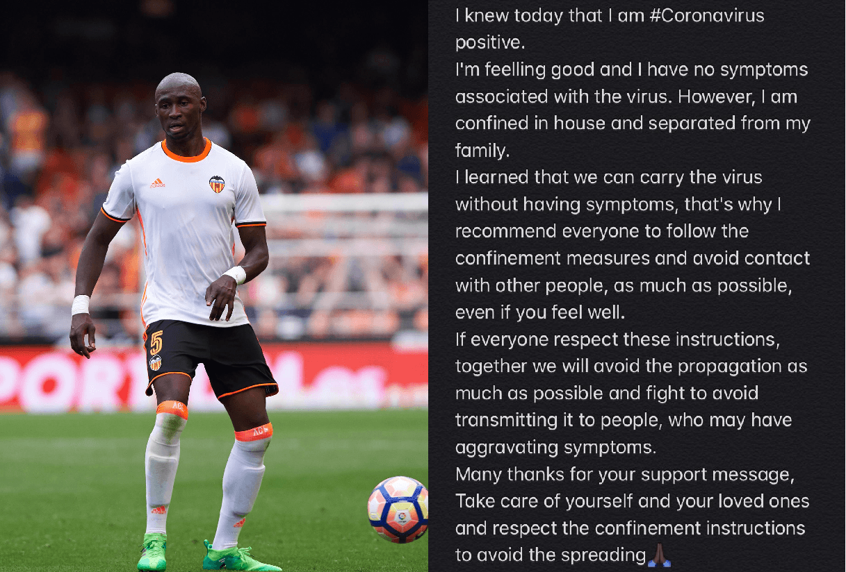 Eliaquim Mangala também tem Coronavírus. Foi o próprio central do Valencia, que já passou pelo FC Porto, a confirmar que se encontra afetado pelo Covid-19. O francês no entanto acrescenta que se sente bem e não tem sintomas. Recorde-se que hoje o Valencia informou que  cinco elementos do clube estavam infetados com o coronavírus, sendo que um era Garay.