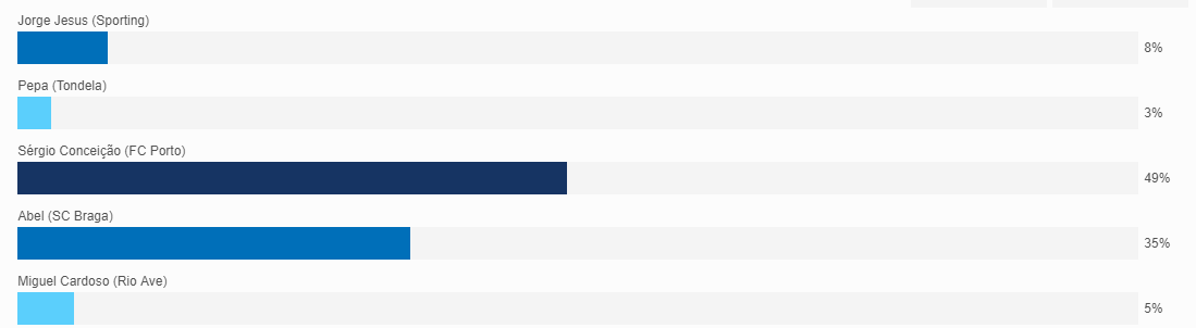 Eu votei no SC, mas consigo perceber quem vota no Abel, o Braga, com um orçamento imensamente mais pequenos que os 3 grandes esteve muito perto destes, com uma 2ª volta estupenda ao nível de um campeão, o que não compreendo é que faça assim tanta comichão aceitar que não se vote no SC, isso se calhar também uma forma não ver algo além das cores do Porto… Fica a dica.