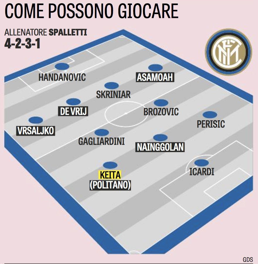 É um bom reforço para o Inter, mas não é o extremo que os nerazzurri precisam no momento, até porque me parece que o Keita será mais uma alternativa ao Perisic, já que rende mais sobre a esquerda, pelo menos prefiro vê-lo nesse lado. Poderá relançar-se com o regresso à Serie A, onde demonstrou o seu valor e demonstrou ser capaz de fazer a diferença. Alguém top na direita era o ideal, mas o senegalês é um extremo jovem, habituado à Serie A e muito rápido e potente, poderá ser muito útil neste plantel. Belo 11 da imagem, ainda longe do nível da Juve, mas de muita qualidade.