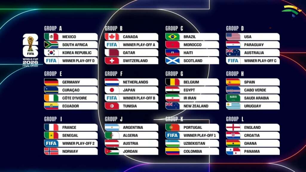 O sorteio do Mundial’26 ditou um potencial Argentina-Portugal nos quartos-de-final caso ambas as seleções vençam os seus grupos. A campeã do Mundo ficou colocada no grupo J juntamente com Argélia, Áustria e Jordânia e defrontará nos dezasseis-avos o 2.º classificado do Grupo H, que tem Espanha, Uruguai, Cabo Verde e Arábia Saudita. Já a França está no Grupo I com Senegal, Noruega e o vencedor do play-off entre Iraque/Bolívia/Suriname e o Brasil ficou com um dos grupos mais difíceis, juntamente com Marrocos, Escócia e Haiti. Nota ainda para o Grupo L, que conta com Inglaterra, Croácia, Gana e Panamá.