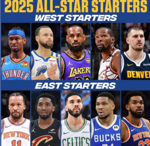 Já estão definidos os 5 iniciais para o jogo All-Star da NBA. No Oeste, os mais votados foram Stephen Curry, Kevin Durant, Shai Gilgeous-Alexander, LeBron James e Nikola Jokic. Já no Este, vamos ter Giannis Antetokounmpo, Jalen Brunson, Donovan Mitchell, Jayson Tatum e Karl-Anthony Towns.