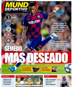 O Mundo Deportivo faz hoje capa com o grande interesse na contratação de Nélson Semedo. Segundo o diário catalão, Juventus (Danilo não convenceu), PSG (Meunier deve sair), Man City (Cancelo não está seguro), Bayern (a ideia é Pavard passar para a zona central) e Inter (se o negócio Lautaro avançar) manifestaram interesse no lateral, internacional português, do Barcelona.