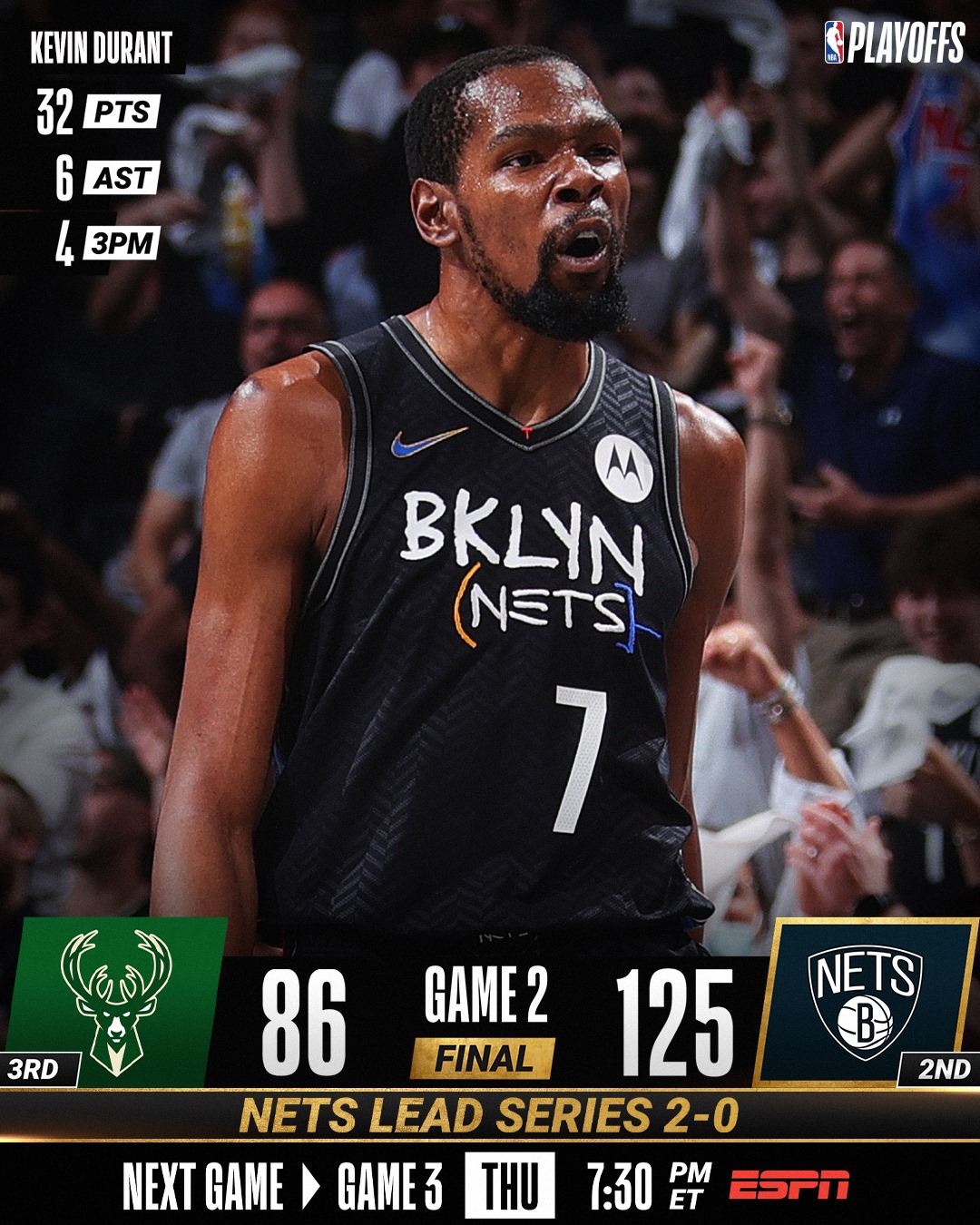 Milwaukee vai conseguir contrariar esta força dos Nets? KD está ‘em modo Killer’ e quando isso acontece é indefensável.
