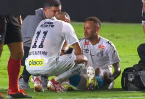 Neymar regressou à titularidade no Santos mas só durou 30 minutos e saiu mesmo do campo a chorar. O avançado lesionou-se novamente na coxa esquerda. Apesar desta baixa, o Peixe conseguiu a primeira vitória no Brasileirão ao bater o Atlético Mineiro, por 2-0.