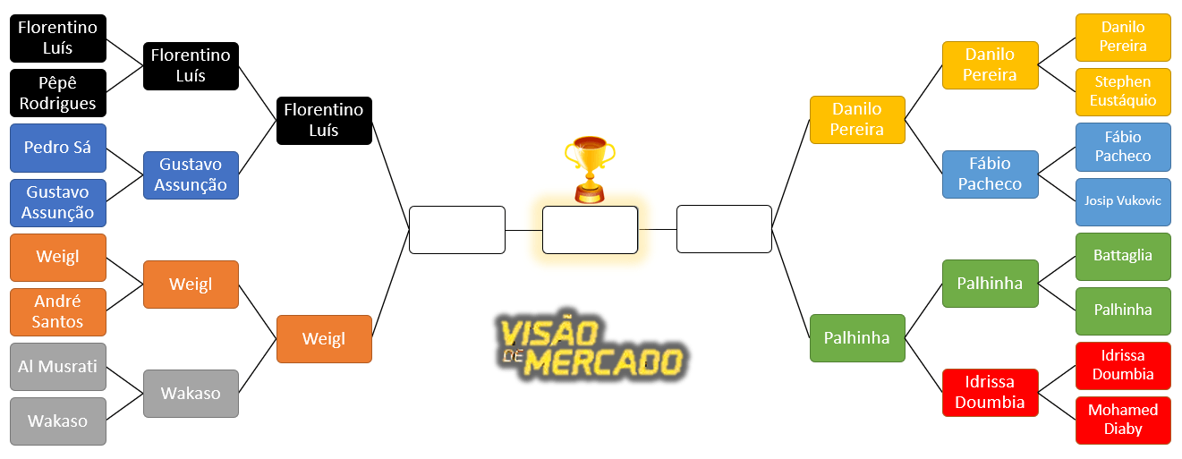 Voto no Weigl apenas pelo nome que trouxe da Alemanha e porque ainda o tenho sob benefício da dúvida. Depois voto Palhinha apesar de o melhor Danilo ser o melhor medef do campeonato.