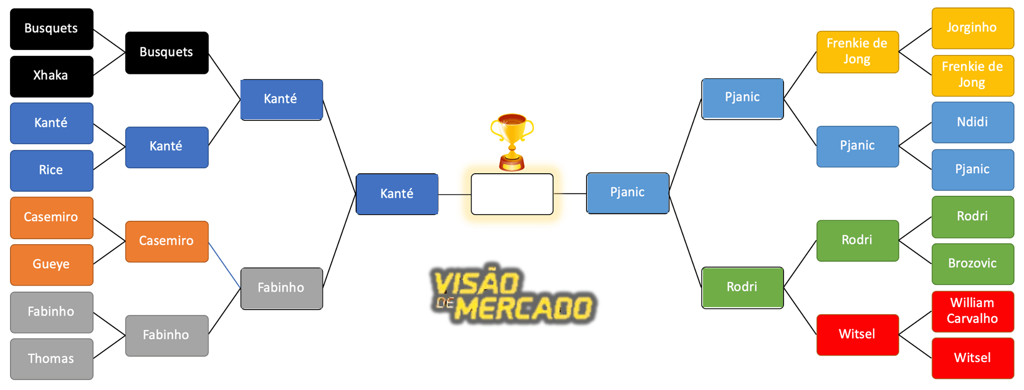 São jogadores muito diferentes e que eu gosto muito, ainda assim escolho Kanté, por ser o mais completo.