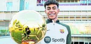 Lamine Yamal conquistou o Golden Boy de 2024, prémio atribuído pelo ‘Tuttosport’ ao melhor sub-21 do Mundo. É o 5.º espanhol a arrebatar o prémio e o 4.º jogador do Barcelona.