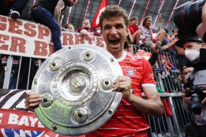 Thomas Müller foi eleito jogador da época no Bayern Munique. O avançado, internacional alemão, de 32 anos, que somou 13 golos e 22 assistências na última temporada, recolheu 26% dos votos dos adeptos bávaros e ficou à frente de Jamal Musiala (19%) e Robert Lewandowski (18%). Manuel Neuer (10%) e Joshua Kimmich (9%) completaram o Top 5.