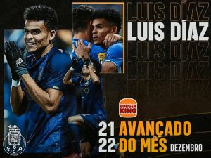 Luis Díaz, do FC Porto, foi o vencedor do prémio Burger King Avançado do Mês da Liga Portugal bwin, referente a dezembro, numa eleição feita pelos treinadores principais da competição, com um total de 29,17% dos votos. No segundo lugar desta eleição, Paulinho (Sporting CP) somou 28,57% dos votos, enquanto Darwin (SL Benfica) completou o pódio, com 11,81%.