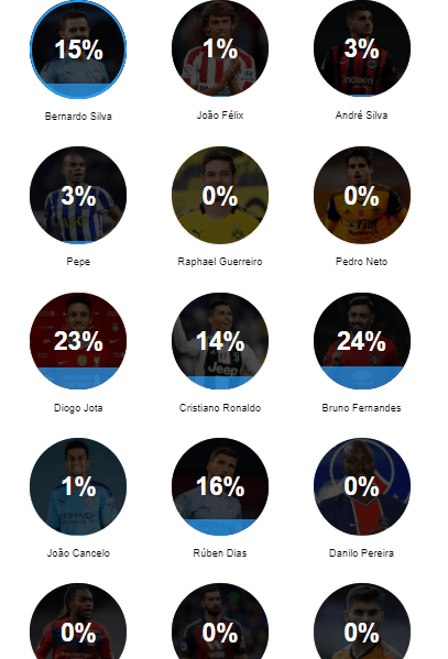 Epah, sinto que o BF está acima de todos os outros, não me parece justo só acima 1% do Jota. Penso que algum “hate” tornou esta votação equilibrada. Para mim é claro que é o melhor Português, a seguir R. Dias, depois Ronaldo e por fim Jota.