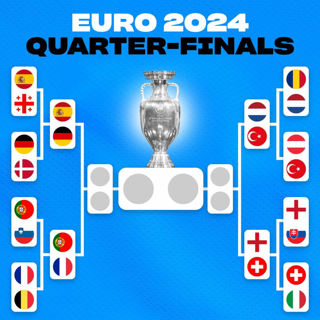 Já estão definidos os jogos dos quartos-de-final do Euro’2024. A saber: