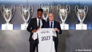 Vinícius Junior prolongou o contrato que o liga ao Real Madrid até 2027. O extremo brasileiro está nos merengues desde 2018 e soma 63 golos em 235 jogos. A nível coletivo, conquistou uma Champions e duas Ligas Espanholas.