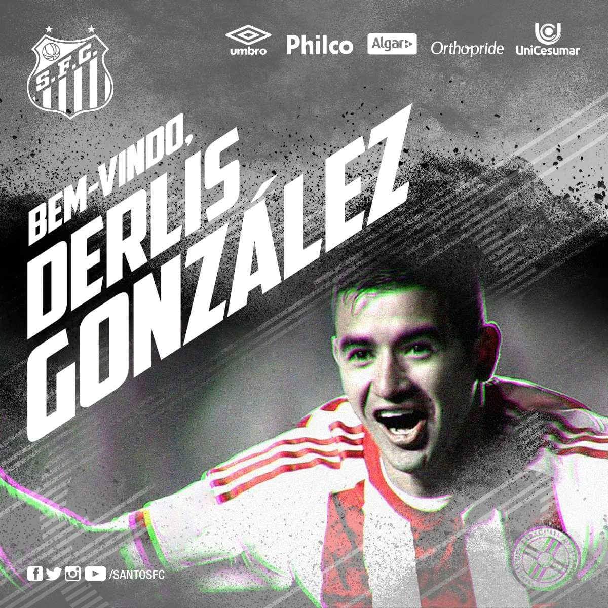 O Santos, do Brasil, anunciou que Derlis González é reforço, chegando proveniente do Dínamo Kiev num empréstimo válido por dois anos. O paraguaio (29 vezes internacional pelo seu país) enfrenta assim um novo desafio na carreira após ter feito 12 golos e 15 assistências em 85 jogos pelos ucranianos nas últimas 3 temporadas. Após despontar no Paraguai, o extremo, de 24 anos, chegou ao Benfica em 2012, onde fez meia época nos juniores. Seguiram-se cedências ao Guarani e ao Olimpia, tendo Derlis sido vendido por 3 milhões de euros, em 2014, ao Basileia, rumando um ano depois para o Dínamo Kiev por 9,4 milhões de euros. Agora ingressa num conjunto que tem feito um mau Brasileirão, estando em 17.º com apenas 16 pontos conquistados em 15 jogos.