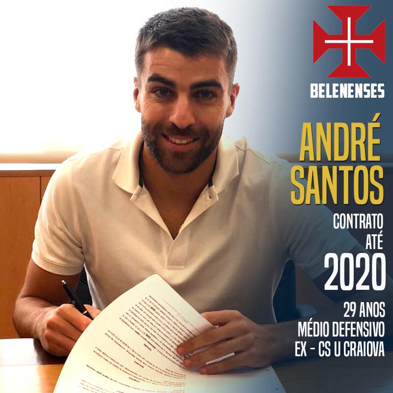 André Santos é reforço do Belenenses, tendo assinado contrato válido por duas temporadas com a equipa de Silas. O médio português, de 29 anos, regressa a Portugal depois de, na segunda metade da campanha passada, ter feito 7 jogos pelo Craiova, da Roménia (na primeira parte de 2017-2018 realizou 23 encontros pelo Arouca, da II Liga). André Santos conta também com passagens por Sporting, União de Leiria (onde foi companheiro de Silas), Fátima, Deportivo, Vitória Guimarães, Metz ou Balikesirspor.