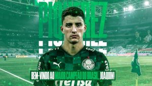 Joaquín Piquerez é o mais recente reforço do Palmeiras. O lateral esquerdo uruguaio, de 22 anos, chega à equipa de Abel proveniente do Peñarol a troco de 3 milhões e vai discutir o lugar com Jorge, ex-defesa do FC Porto.