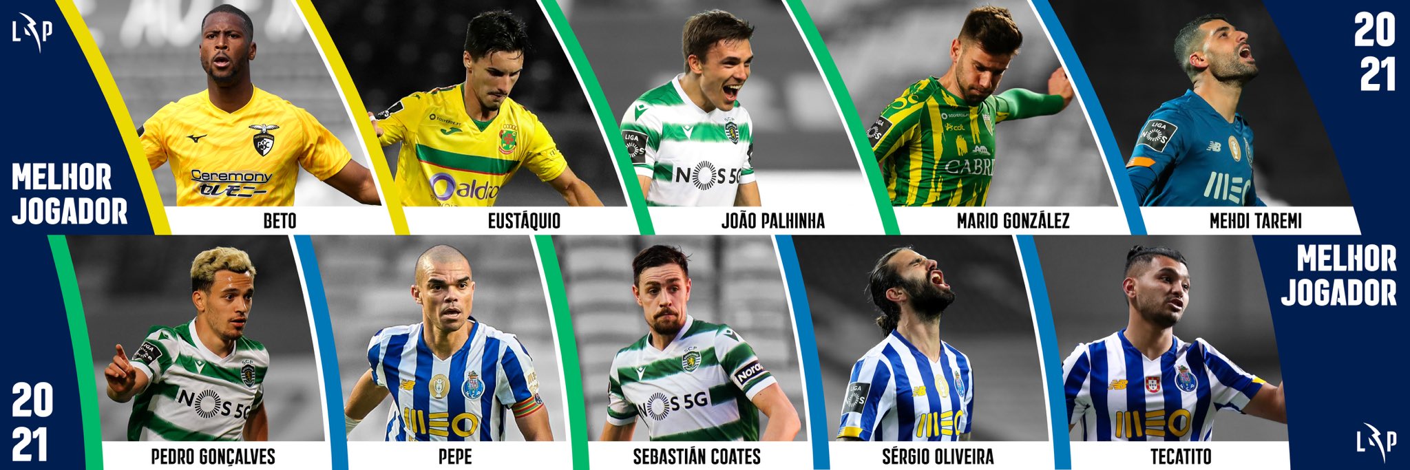 Beto (Portimonense), Eustáquio (Paços de Ferreira), João Palhinha (Sporting), Mario González (Tondela), Taremi (FC Porto), Pedro Gonçalves (Sporting), Pepe (FC Porto), Coates (Sporting), Sérgio Oliveira (FC Porto) e Corona (FC Porto) foram os 10 jogadores mais votados por treinadores e capitães da Liga para o prémio de MVP. O organismo vai anunciar o vencedor no dia 8 de Julho.