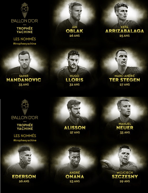 Já são conhecidos os candidatos ao prémio Yashin, que será atribuído ao melhor guarda-redes do Mundo na gala da Bola de Ouro. Alisson Becker (Liverpool), Jan Oblak (Atlético Madrid), Ederson (Manchester City), Manuel Neuer (Bayern Munique) André Onana (Ajax), Wojcieh Szcesny (Juventus), Kepa Arrizabalaga (Chelsea), Samir Handanovic (Inter Milão), Hugo Lloris (Tottenham) e Marc-André Ter Stegen (Barcelona) são os nomeados. Recorde-se que Alisson venceu o prémio no The Best.