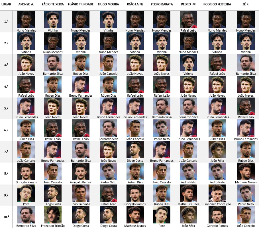 Nuno Mendes em 1º ajusta-se, mas se ele e Vitinha invertessem as posições no ranking também não me surpreenderia.