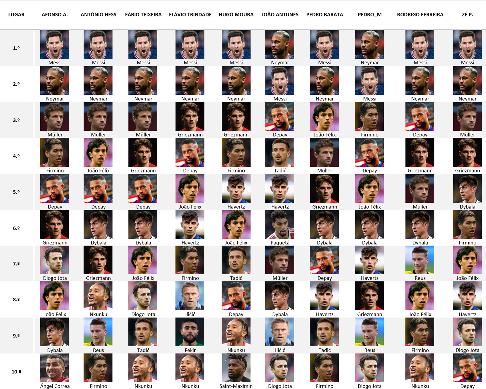 Trocando um ou outro de lugar (talvez Muller acima de Depay) e seria o meu top 10.