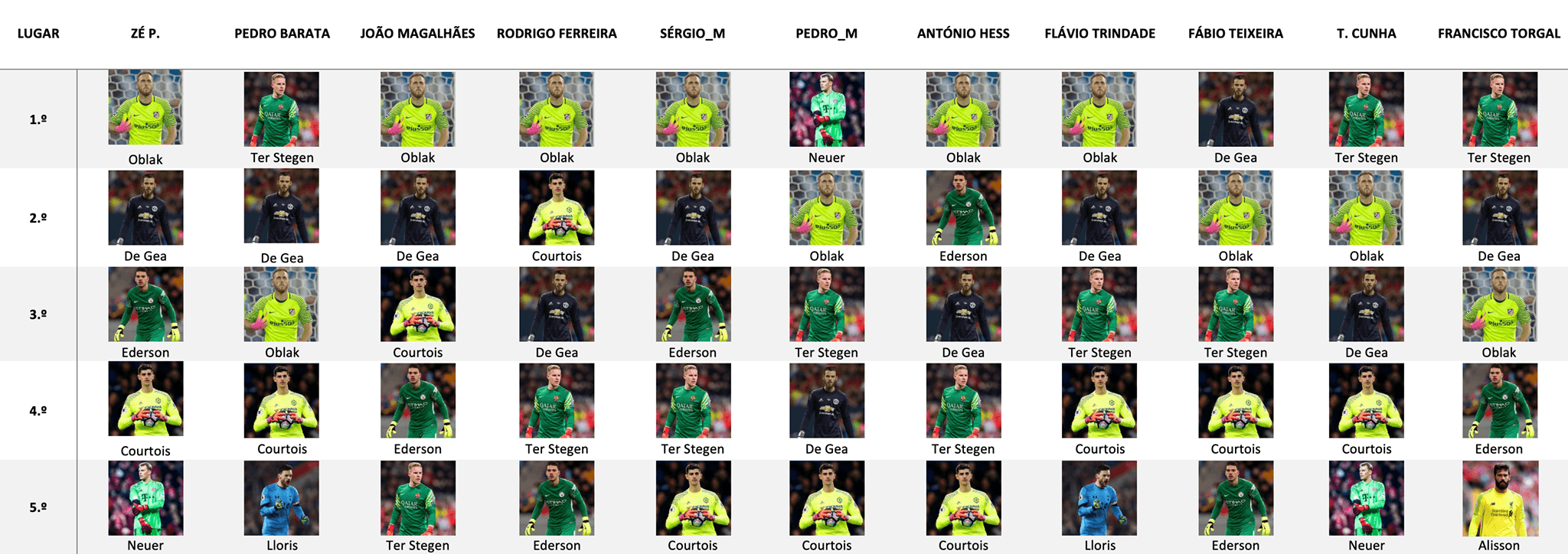 É curioso analisar que o caso do ter Stegen é uma questão de “love me-hate me” e não é tão homogéneo como Oblak, De Dea, ou até o Courtois. 3 users acham-no o melhor do mundo, os restantes 7 nem no segundo lugar o colocam.