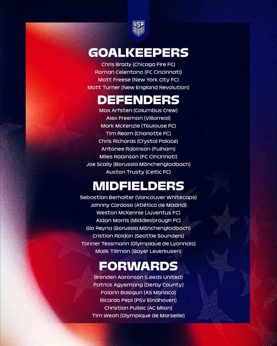 Um 11 com: Turner, Freeman Richards McKenzie Robinson, Johnny Mckennie Tillman, Weah Balogun e Pulisic faz uma equipa engraçada