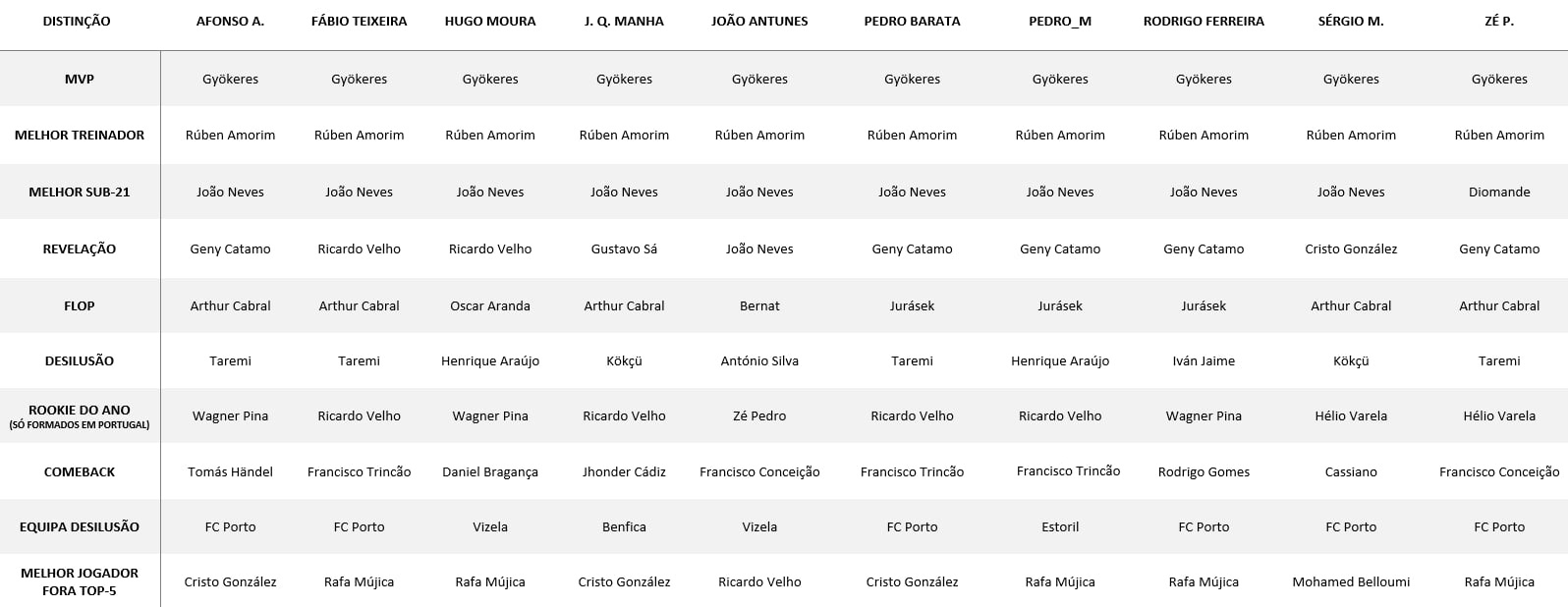 Melhor treinador: Amorim de longe, aliás tudo abaixo do Amorim está mais perto do pior treinador que do próprio Amorim.