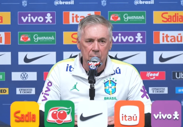 Brasil Vídeo Ancelotti dá os exemplos de Felipão e Parreira e recorda que o Brasil foi campeão com equipas que eram fortes a defender1 dia ago4Comentários