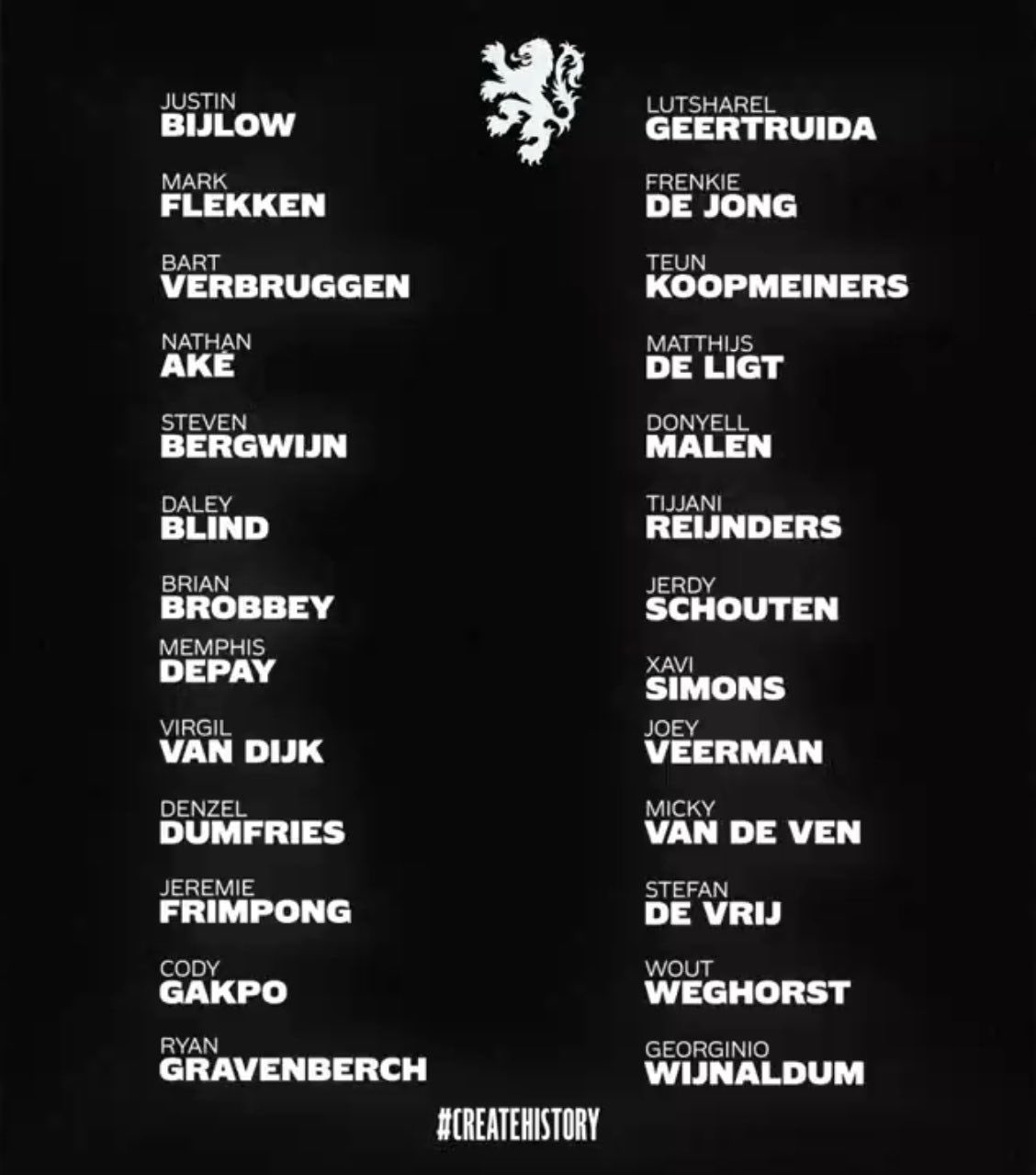 É muito estranho ainda estar aqui o Wijnaldum, o Timber fez uma época muito boa e merecia a convocatória. Também é pouco compreensível o Koeman ter abdicado do Maatsen, quando era o único lateral mais ofensivo que tinha no plantel.