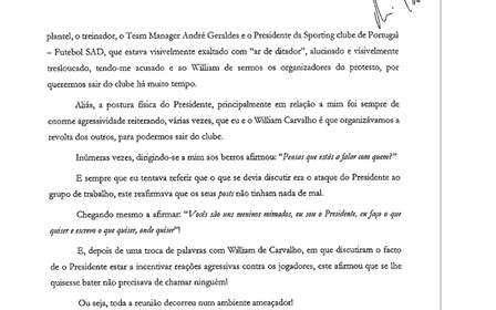 «E depois de uma troca de palavras com William Carvalho, em que discutiam o facto de o Presidente estar a incentivar reações agressivas contra os jogadores, este afirmou que se lhe quisesse bater não precisava de chamar ninguém!»