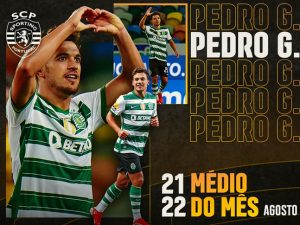 Pedro Gonçalves iniciou da melhor maneira a época 2021-22, conquistando o prémio de Médio do Mês da Liga Portugal bwin, referente ao mês de agosto, depois de contabilizar um total de 19% dos votos dos treinadores principais da competição. O craque do Sporting participou nos quatro encontros disputados pelos leões neste período, com três golos apontados, tendo batido o colega de equipa, João Palhinha, que contabilizou 18% dos votos. A completar o pódio surge João Mário, do SL Benfica, com 16% dos votos.