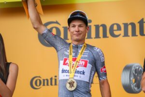 Jasper Philipsen venceu a 1.ª etapa do Tour, assumindo assim a camisola amarela. O ciclista belga da Alpecin – Deceuninck bateu Girmay no sprint, num dia que ficou marcado por um corte no pelotão já nos últimos 20km, que deixou João Almeida, Remco Evenepoel ou Roglic no 2.º grupo, além dos principais candidatos no sprint, como Merlier, Meeus e Milan. Quem chegou foi na frente foram Pogacar e Vingegaard. Bom dia também para Enric Mas e Tobias Halland Johannessen que chegaram na frente. Já Almeida viu o seu grupo chegar a 39 segundos dos da frente.