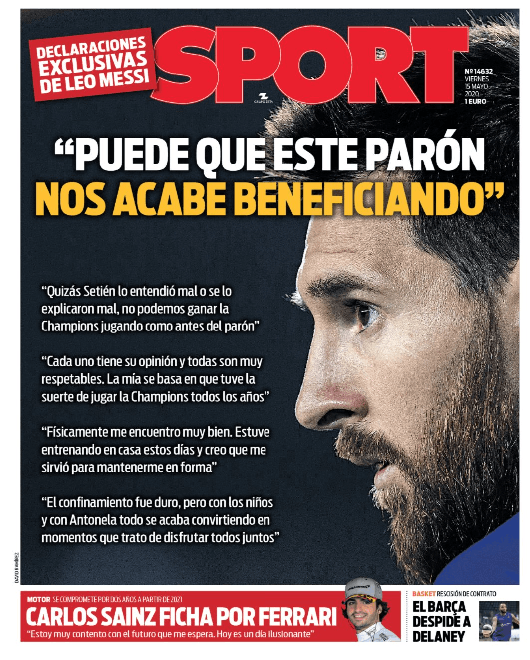 Leo Messi deu uma entrevista ao Sport, onde reconheceu que a paragem, devido à Covid-19, poderá beneficiar o Barcelona. «Talvez esta paragem nos beneficie, mas veremos quando começarem as competições». O argentino falou ainda das ‘polémicas’ afirmações sobre a Champions, esclarecendo que quando disse que “com o que estavam a fazer não dava para vencer a prova”, não foi com o propósito de criticar o plantel. «Talvez Setíen [que afirmou que dava para vencer] tenha percebido mal ou explicaram-lhe mal. O que disse é que com o que estávamos a jogar não dava para vencer a Champions. Nunca duvidei do plantel que temos e não tenho dúvidas que podemos ganhar o que falta, mas não a jogar como estávamos».