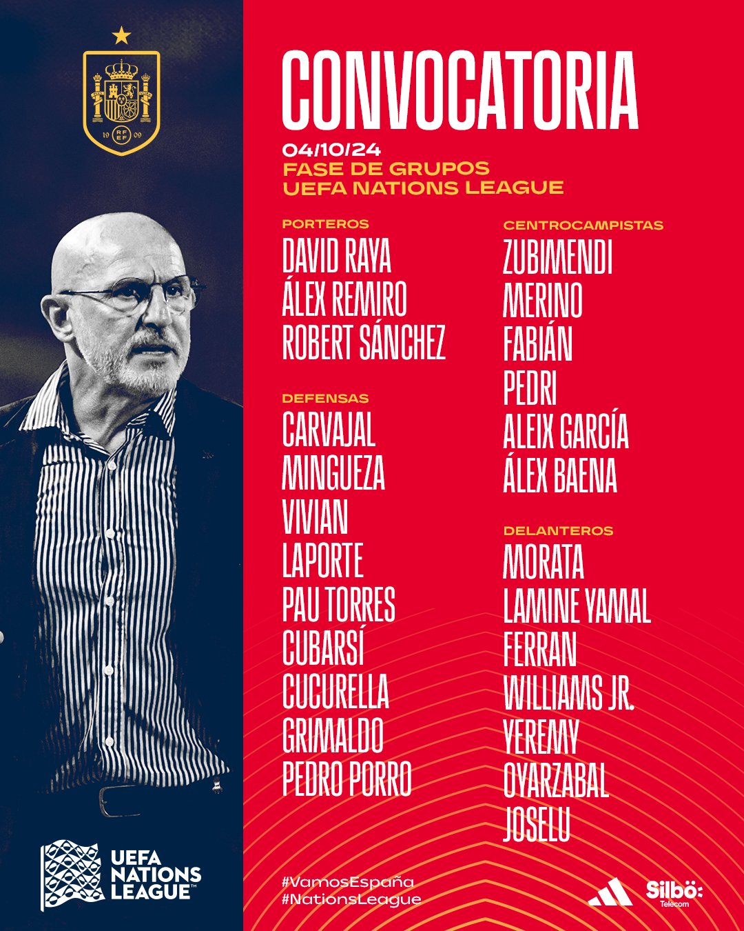 DF: Carvajal, Porro, Vivian, Aitor Paredes, Cubarsi, Pau Torres, Inigo Martinez, Cucurella, Grimaldo