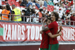 Portugal venceu na Grécia por 4-0 e assumiu a liderança do grupo de qualificação para o Europeu sub-21. O conjunto das Quinas resolveu o problema logo na 1.ª parte, com golos de Fábio Carvalho, que se estreou a marcar aos 13 minutos; Fábio Vieira de penalti (falta sobre Fábio Silva), aos 32′ e pelo próprio Fábio Silva, aos 45′, assistido por Fábio Carvalho. No 2.º tempo, Afonso Sousa e Henrique Araújo, que saltaram do banco, construíram o 4-0 final, sendo que o avançado do Benfica marcou pela 2.ª vez nesta fase de apuramento. Com este triunfo, a turma de Rui Jorge alcança os 19 pontos no Grupo D, à frente da Grécia, que tem 17 e mais uma partida realizada.