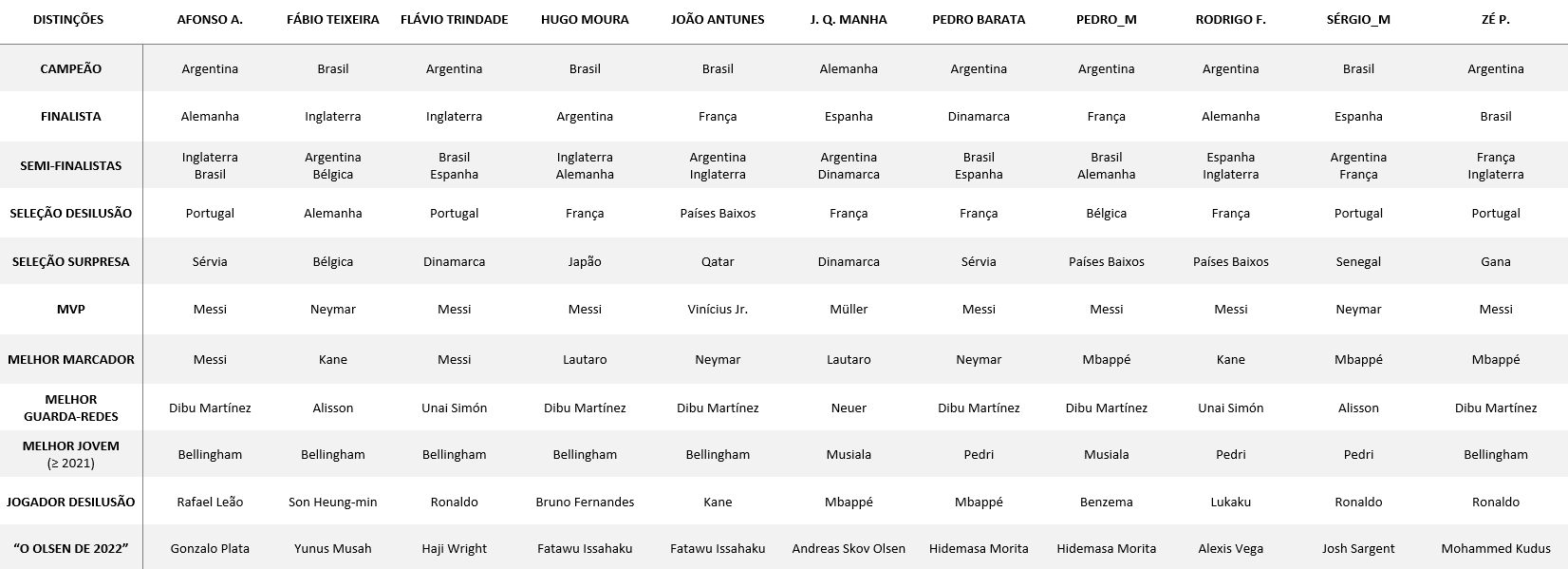 Para desilusão de alguns aqui Portugal vai chegar às meias e Argentina não. Não percebo a fé em Inglaterra