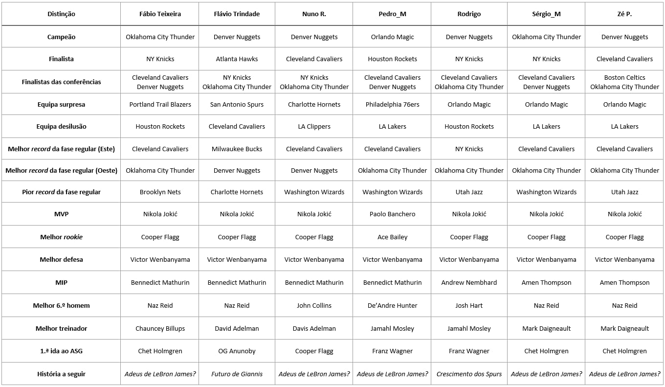 Não temos o mesmo campeão dois anos seguidos desde os Warriors mas acho que pode muito bem acontecer em 2026. Os Thunder são uma máquina, jovens, talentosos, rápidos, defesa sufocante, vão ter “upgrades” ao plantel. Mesmo com os Nuggets a subirem o nível são destacadamente os favoritos e a melhor equipa.