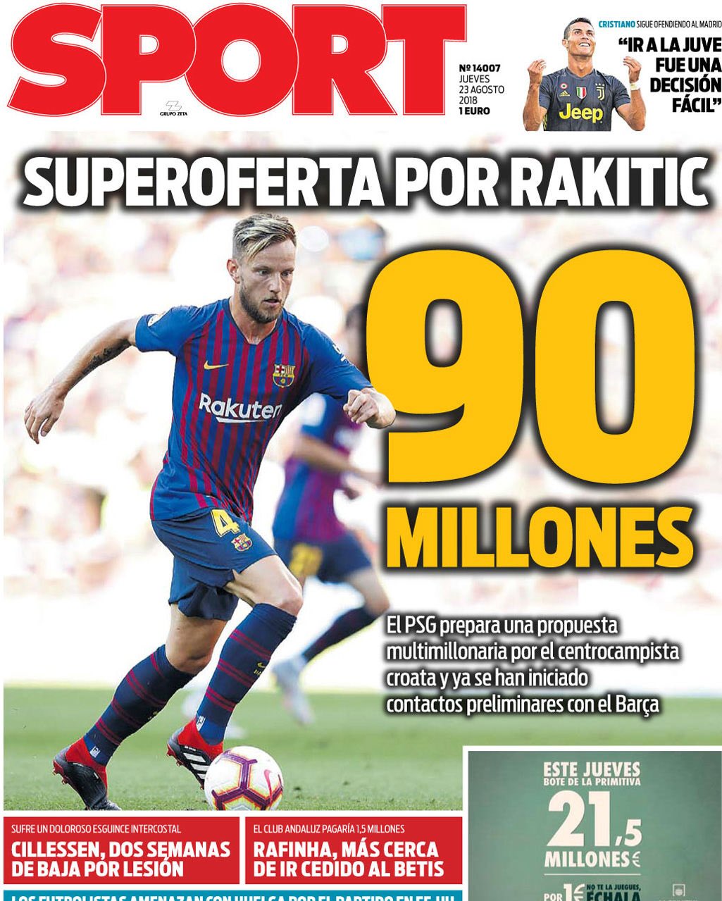90milhões por Rakitic é surreal… É que apesar de ser um excelente jogador já tem 30anos. Por isso acho que o Barcelona perante tal oferta deveria de pensar seriamente em aceitar ou em tentar por o Rabiot no negócio.