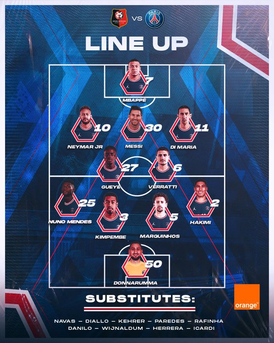 O PSG sofreu a primeira derrota na Ligue 1 ao perder no terreno do Rennes, por 2-0. Pochettino alinhou com Hakimi, Nuno Mendes, Messi, Di Maria, Neymar ou Mbappé, mas os parisienses realizaram uma exibição pobre e quando estavam a apertar e a justificar o 1-0, sofreram em cima do intervalo, tendo Laborde aproveitado uma falha de Mendes. Logo a abrir o 2.º tempo Tait ampliou e os parisienses não conseguiram responder.