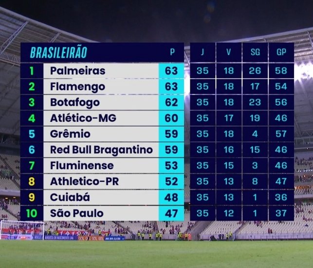 O Brasileirão ficou ainda mais louco. O Botafogo foi o 1.º candidato a entrar em campo, tendo dado vida aos rivais com o 1-1 em casa contra o Santos. O Fogão adiantou-se por Danilo mas sofreu o empate já no minuto 90. O Palmeiras, por sua vez, vacilou ao não ir além do 2-2 no terreno do Fortaleza. Thiago Galhardo adiantou os da casa e para complicar a vida à Abel o central Gustavo Gomez foi expulso aos 59′. Veiga no entanto fez o 1-1. Logo a seguir Calebe adiantou o Fortaleza, que teve oportunidade clara para o 3-1, no entanto Zé Rafael voltou a empatar e manteve assim o Verdão na liderança, apesar de ter os mesmos pontos do Flamengo, que venceu o América Mineiro por 3-0. Já o Grémio (derrota contra o Atlético Mineiro, por 3-0) e o Bragantino (perdeu contra o Internacional) devem ter ficado fora da luta.