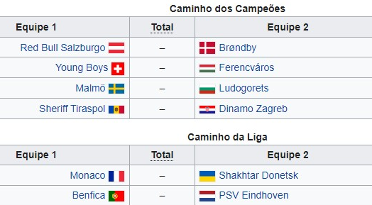 Resultados da 2.ª mão da 3.ª pré-eliminatória da Champions: