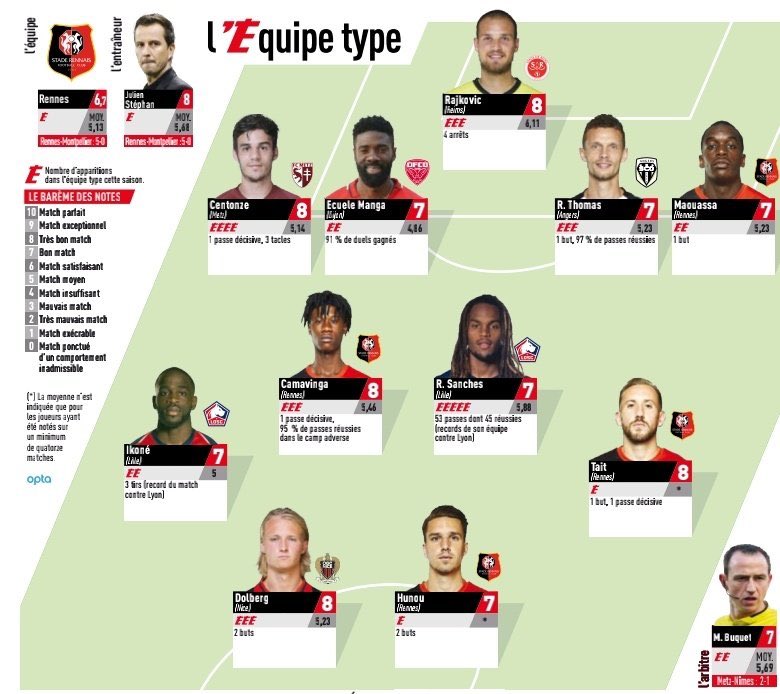 Renato Sanches, que esteve em destaque na vitória do Lille frente ao Lyon, voltou a figurar na equipa da semana da Ligue 1, algo que consegue pela 5.ª vez esta época. O médio português tem a companhia de de Rajkovic (Reims), Centonze (Metz), Manga (Dijon), Thomas (Angers), Maouassa (Rennes), Camavinga (Rennes), Ikoné (Lille), Tait (Rennes), Hunou (Rennes) e Dolberg (Nice).