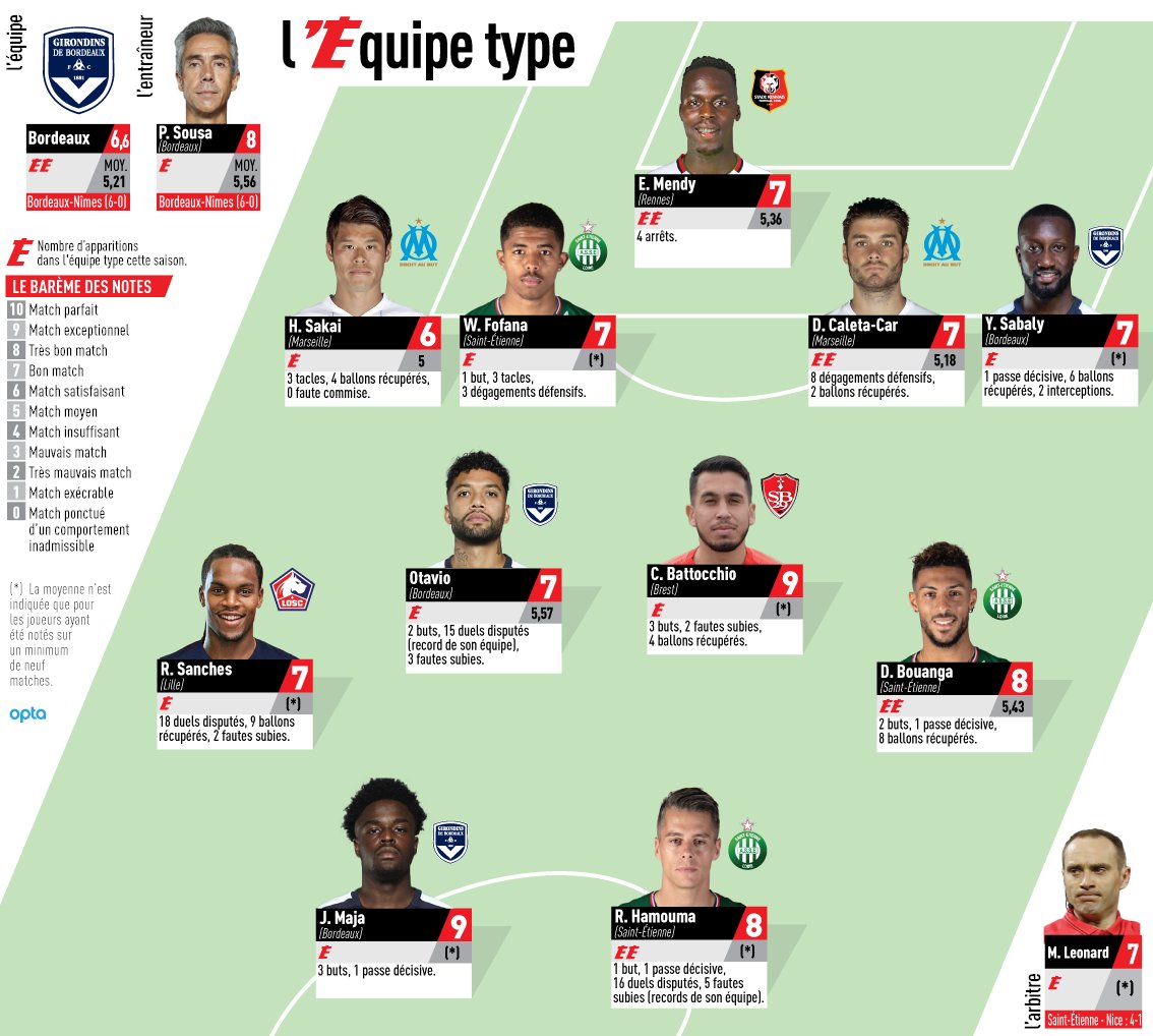 Renato Sanches, que já tinha estado em destaque diante do Dijon, voltou a brilhar na vitória do Lille em Lyon, e figura mesmo no Dream Team da 16.ª jornada da Ligue 1. O internacional português tem a companhia de Mendy (Rennes) – Sakai (OM), Fofana (ASSE), Caleta-Car (OM), Sabaly (Bordeaux) – Otavio (Bordeaux), Battocchio (Brest), Bouanga (ASSE) – Maja (Bordeaux) e Hamouma (ASSE). Já Paulo Sousa foi eleito o melhor treinador.